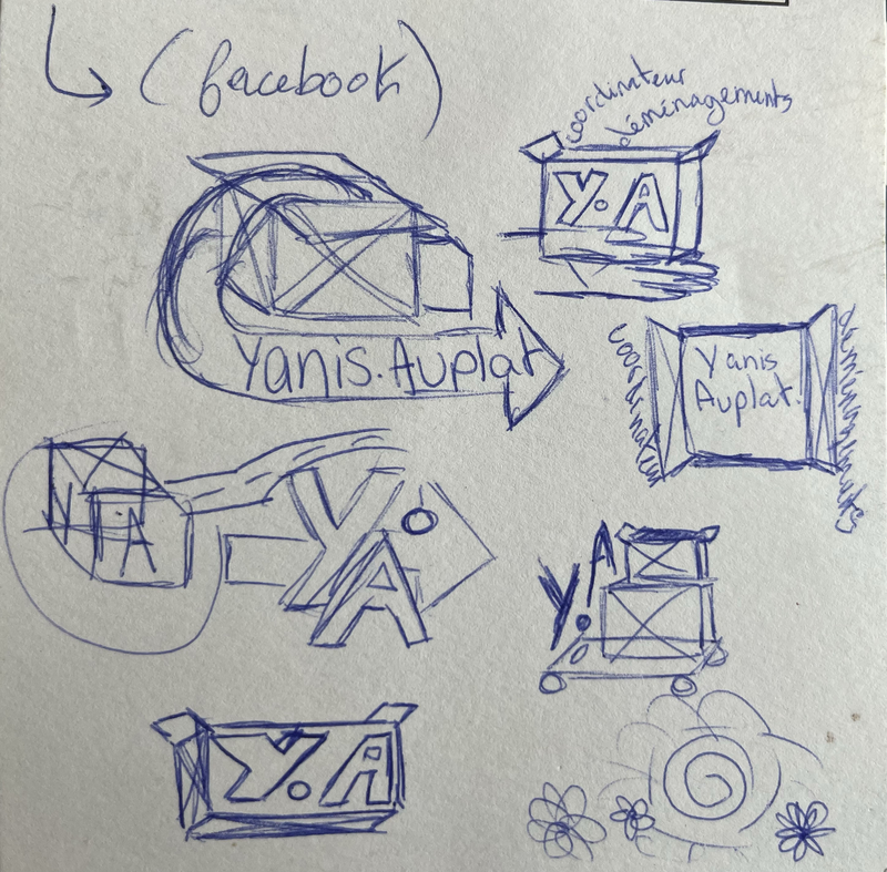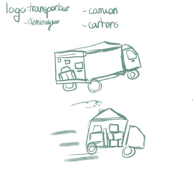 Je suis allée dans le studio que mon maître de stage et ses associés viennent d'acquérir à Bègles pour y entreposer leurs œuvres, travailler et faire des expositions artistiques. Forcément sur ces lieux sont venus des clients dont l'un d'eux que mon maître de stage a redirigé vers moi afin d'effectuer moi même le projet qu'il demandait. Celui-ci m'a donc énoncé ses idées : créer un logo pour son entreprise de déménagement, je lui ai aussi posé un tas de questions tout en prenant des notes telles que les couleurs qu'il souhaitait y mettre, si il avait besoin d'un slogan, le nom de son entreprise bien sûr et sur quoi il aimerait l'exposer (réseaux sociaux, un camion, un panneau...). Après avoir obtenu les réponses dont j'avais besoin j'ai dessiné les croquis qui me venaient à l'esprit puis je suis passée sur Illustrator pour essayer de commencer à tout mettre en forme (tout cela au cour de la semaine et en parallèle du travail avec mon maître de stage).